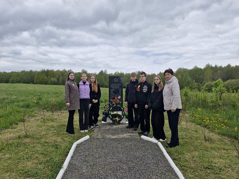 памятник "Братская могила жертвами фашизм еврейской национальности" и памятник на месте расстрела мирных жителей еврейской национальности, почтили минутой молчания память погибших, возложили цветы.